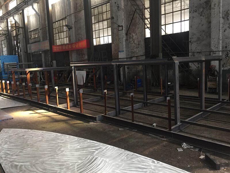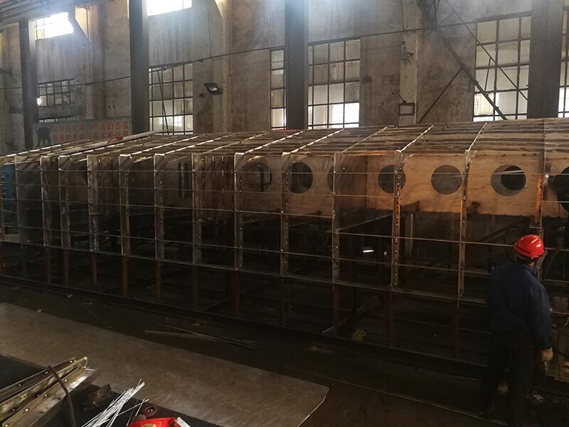 After hull main structure welded ready then turn the hull over, then starting welding hull inside again.